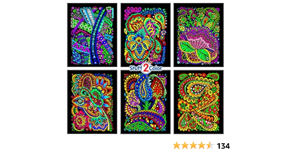 Amazon Com Tangles 6 Pack Of Fuzzy Velvet Coloring Posters For Adults Kids Toddlers Girls And Boys All Ages Arts And Crafts Activity Perfect For Stress Relief Vacation Travel Or Plane